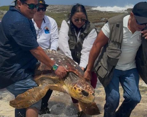 MásCozumel.- Un ejemplar de tortuga Caguama fue hallada varada entre formaciones rocosas en una área ubicada en la costa oriental de la